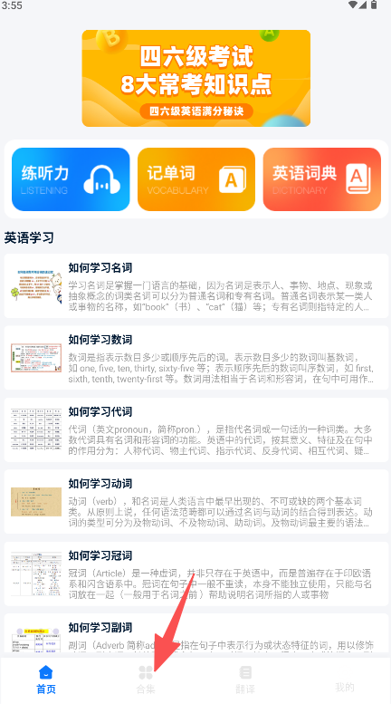 1、定位为系统性的英语语法学习工具,核心内容围绕冠词、时态、从句等语法知识点展开。