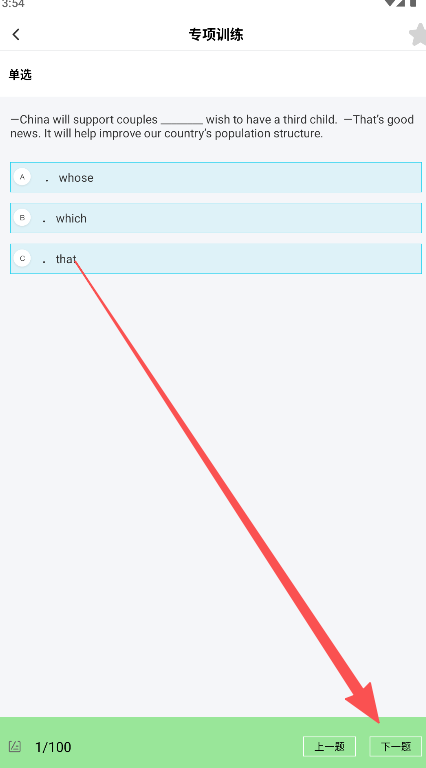 3、选择答题点击进入下一题以完成对应习题巩固。