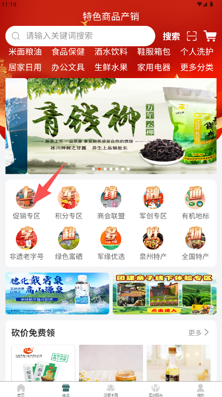 1、在首页导航栏或功能区找到并点击“促销专区”图标入口。