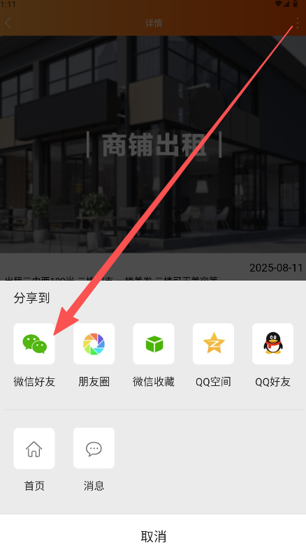 3、在详情页点击右上角“分享”按钮,在弹出的选项中选择“微信好友”等渠道分享。