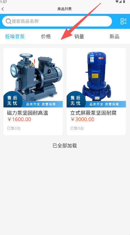 3、进入商品列表页后,可按要求排序筛选商品。