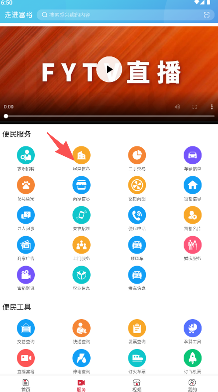 2、在页面的便民服务区域点击“房屋信息”图标进入。