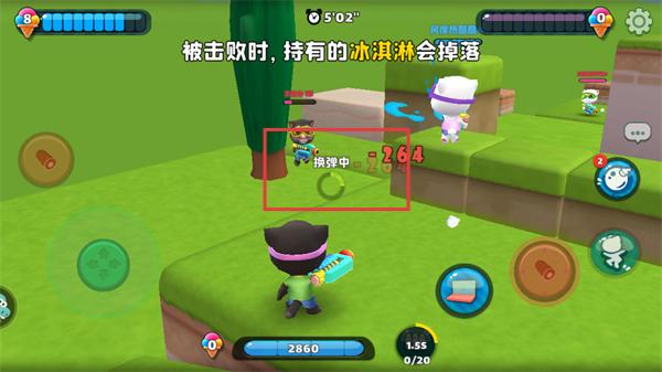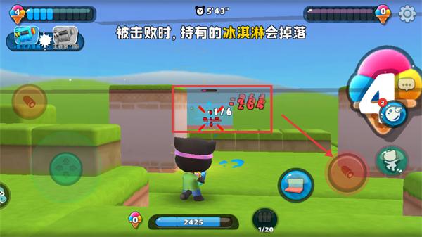 1、攻击对手触发伤害数值提示,同时牢记【被击败时,持有的冰淇淋会掉落】规则,优先保护自身道具。