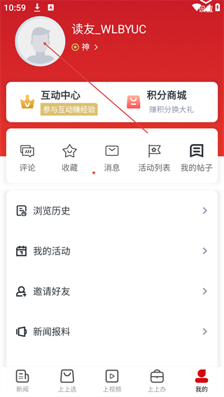 2、在个人中心页面,点击头像区域,进入个人信息页面。