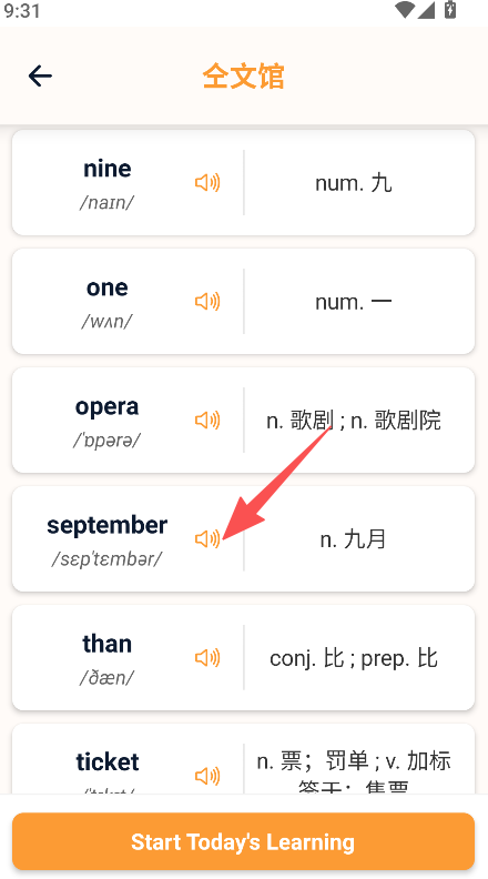 3、支持今日学习启动功能,点击按钮可开启当日的单词学习内容。