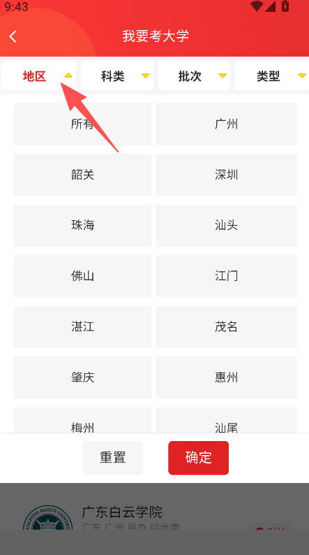 2、在春招院校中选择地区等筛选条件。