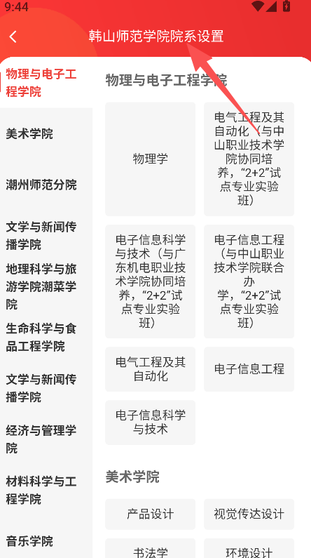 3、确认条件后查看对应院校的院系设置。