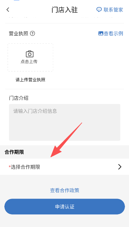 3、配备联系管家认证功能,辅助解决入驻过程中的问题,提升门店入驻的顺畅性。