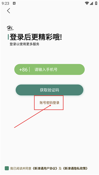 2、在登录界面除了验证码登录,还可选择【账号密码登录】,需先勾选协议再填写对应账号信息以登录。