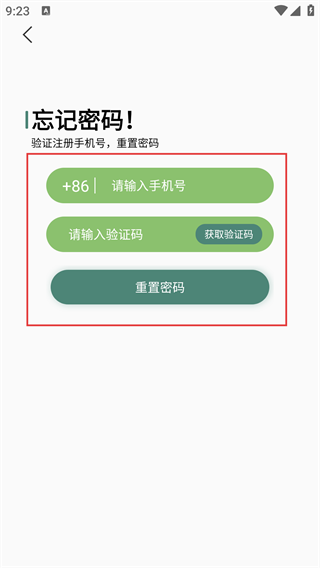 4、在【忘记密码】界面,依次填【+86-请输入手机号】,获取验证码填入,点击【重置密码】完成密码更新。