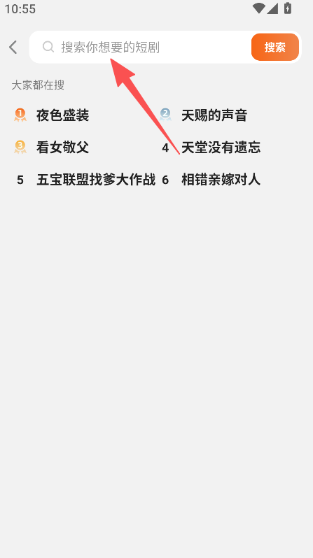 1、打开软件点击搜索框、输入短剧名称进行搜索。