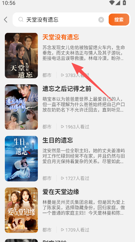 2、在搜索结果页面选择对应短剧、进入播放页面。