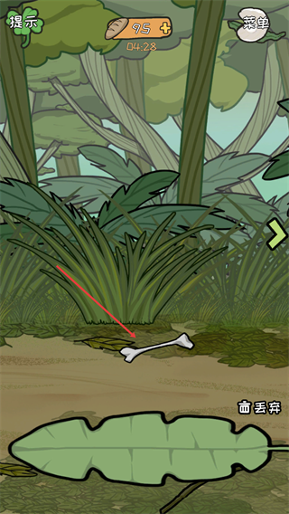 2、进入荒岛场景后,找到并拾取地面上的骨头道具。