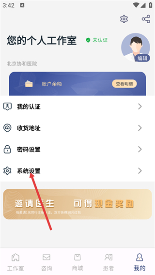 2、进入【我的】页面,可管理账户信息,找到【系统设置】选项并点击,进入软件的设置中心界面。