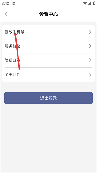 3、在【设置中心】界面,可查看【服务协议】等内容,点击【修改手机号】选项,进入手机号修改页面。