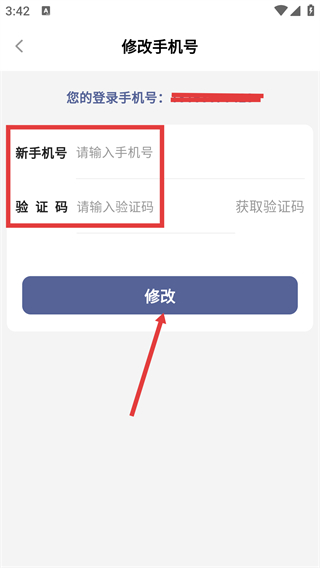 4、进入【修改手机号】页面,填写【新手机号】与【验证码】,确认信息后点击【修改】按钮,完成手机号更换。