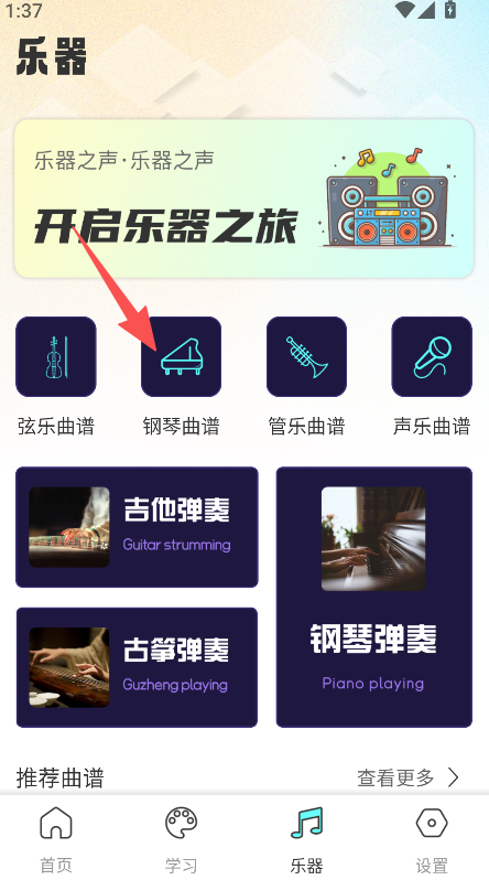 1、打开软件进入乐器板块,选择对应曲谱分类。