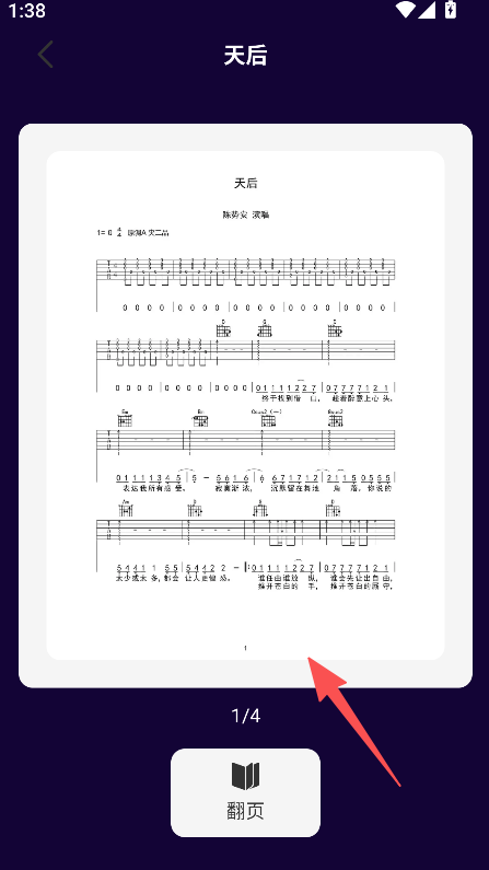 3、进入曲谱详情页查看内容,点击翻页浏览完整曲谱。