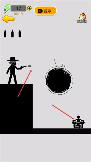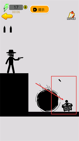 2、进入关卡后,留意【17-体力】与计时,操作持枪角色瞄准目标,可借助【提示】按钮获取辅助,推进当前关卡进度。