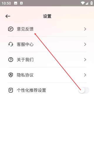 3、在设置页面,选择【意见反馈】选项进入对应的反馈页面。