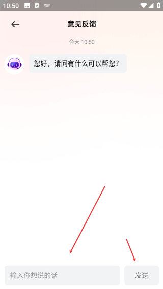 4、在意见反馈页面,【输入内容】后点击【发送】即可提交反馈信息。