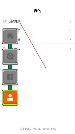 2、在我的页面,点击【给点建议】选项进入对应的建议反馈页面。