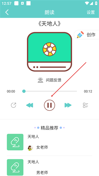 4、在朗读页可播放内容音频,通过暂停等按钮控制播放,辅助朗读学习。