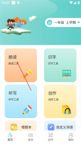 2、在首页点击【朗读】工具,可进入朗读内容的选择页面。