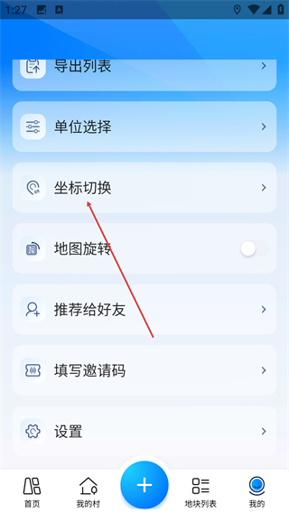 3、在个人页面中,选择【坐标切换】选项,可进入坐标相关的设置界面。