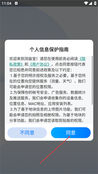 1、阅读【个人信息保护指南】后,点击【同意】按钮以进入应用。