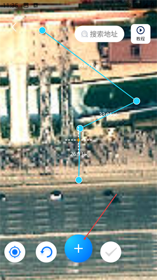 3、在绘制界面点击底部【+】按钮,可添加节点以勾勒地块的边界形状。