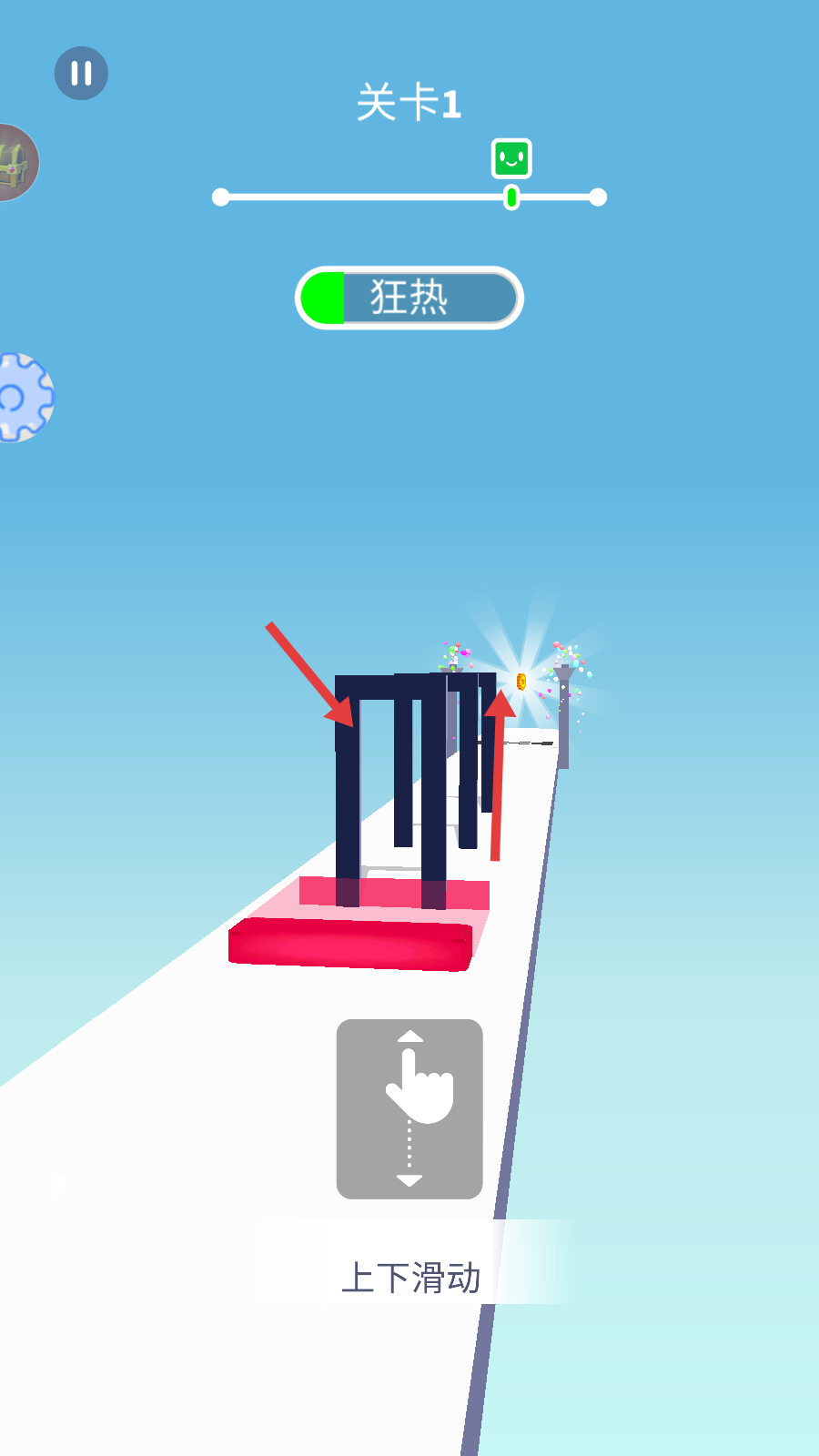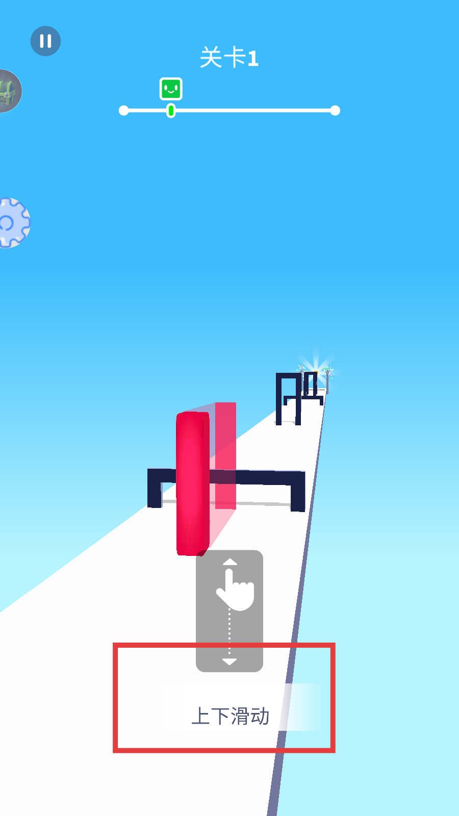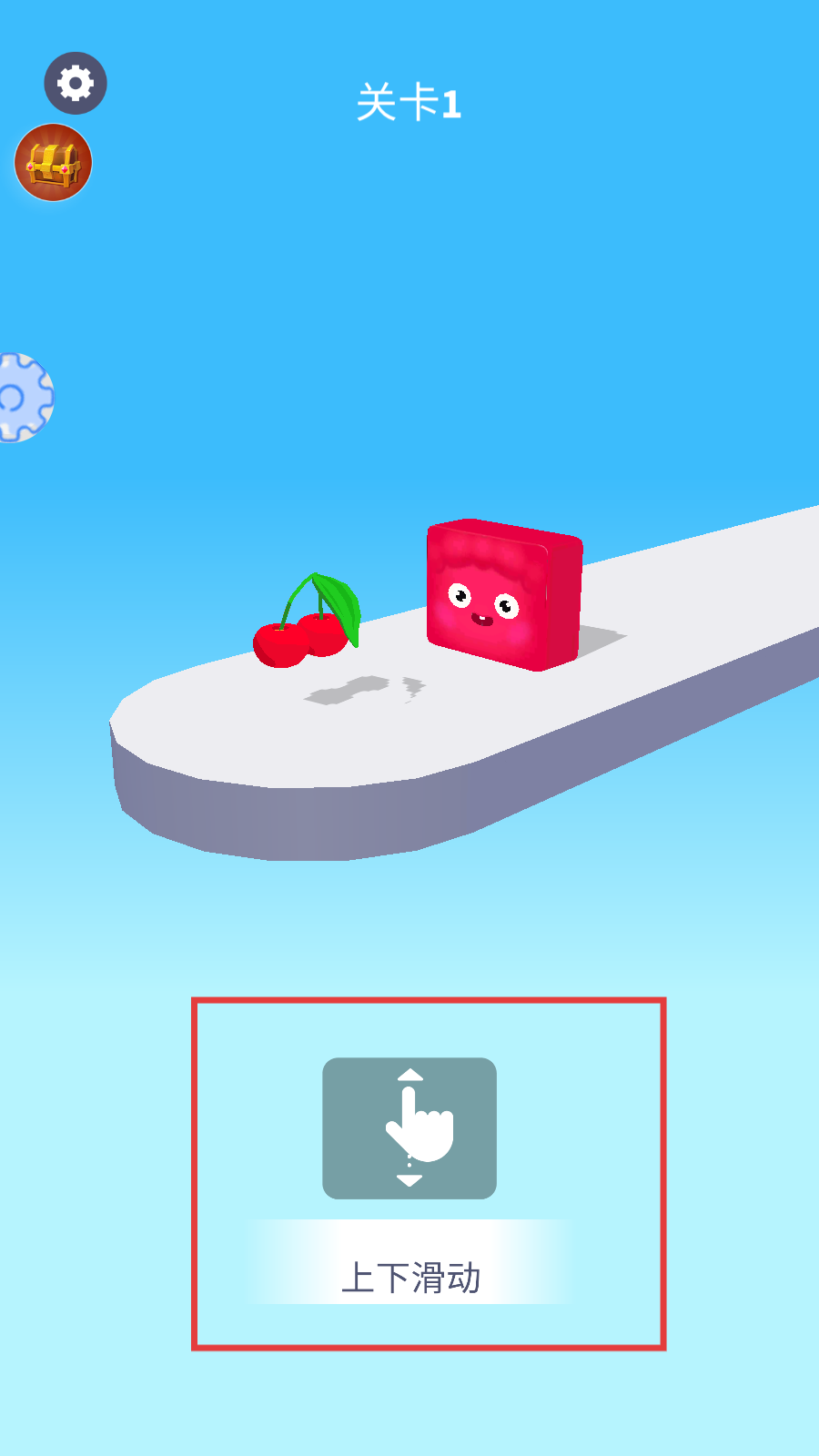1、在关卡1开始界面,按照提示【上下滑动】,操控红色方块开始移动。