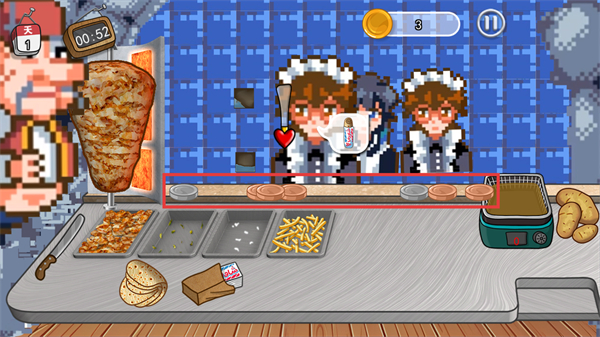 沙威玛像素小店是一款让你体验当老板乐趣的模拟经营游戏,像素风画面看着特别可爱又怀旧。这回你不再是食客而是摇身变成沙威玛摊主,要给来来往往的客人做美味卷饼。肉片在烤架上滋滋作响,薄饼散发着麦香,看着客人狼吞虎咽的样子特有成就感。操作很简单,只需拖动食材就能完成制作,但要注意把握火候和时间,不然会被挑剔的顾客给差评。