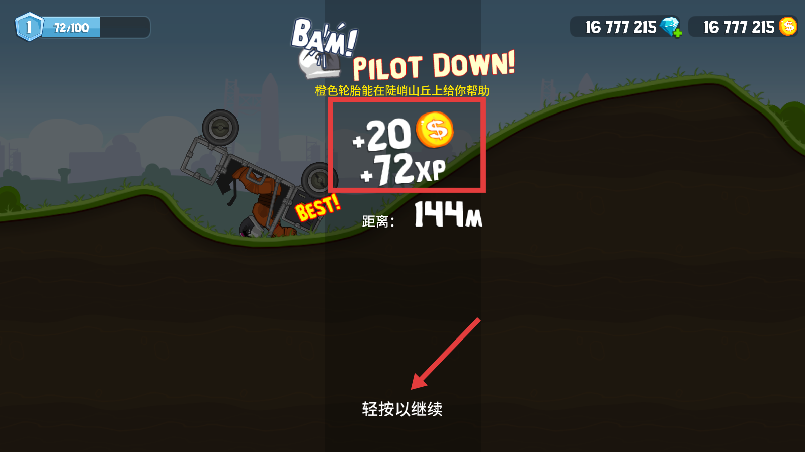 4、车辆翻车后,轻按屏幕继续游戏,可获得奖励。