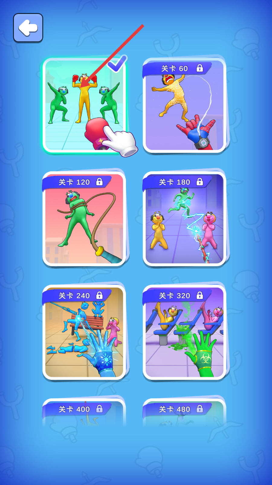 2、点击解锁的关卡,开始游戏挑战。