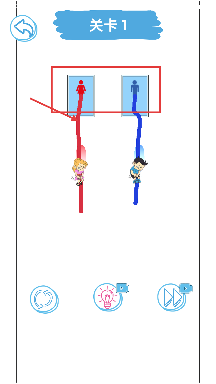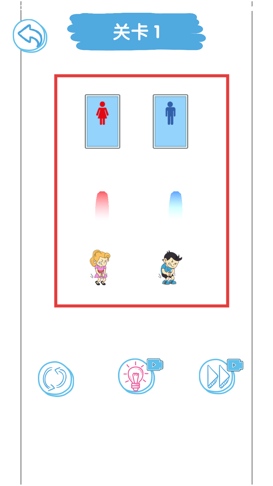 2、在关卡1中,看到男女厕所标识及对应的人物。