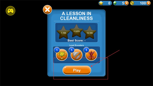 1、玩家进入游戏,在关卡选择界面可以点击【Play】进入关卡,该关卡目标是清理害虫,需积累分数解锁星级评价。