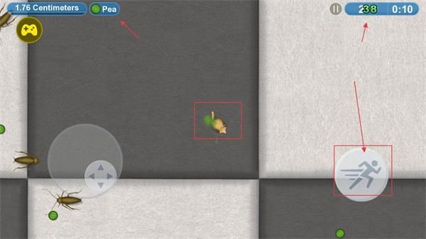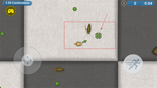 2、操控角色靠近【Cockroach】(蟑螂),通过移动收集绿色球体,这是获取分数的核心方式,同时需避开害虫的威胁。