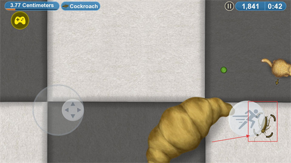 4、当角色成长为【Cockroach】形态后,可主动对抗其他害虫,进一步积累分数,推进关卡进度以获取更高评价。