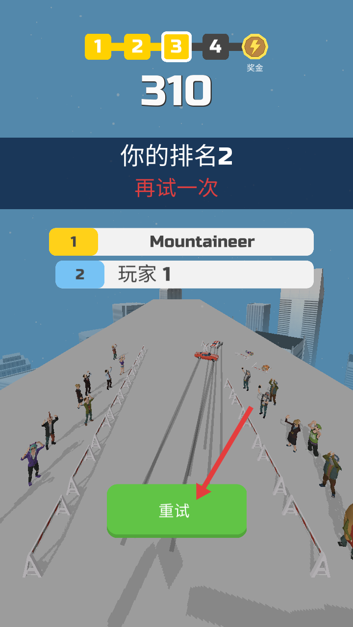4、排名不理想时,点击【重试】按钮,重新开始比赛。