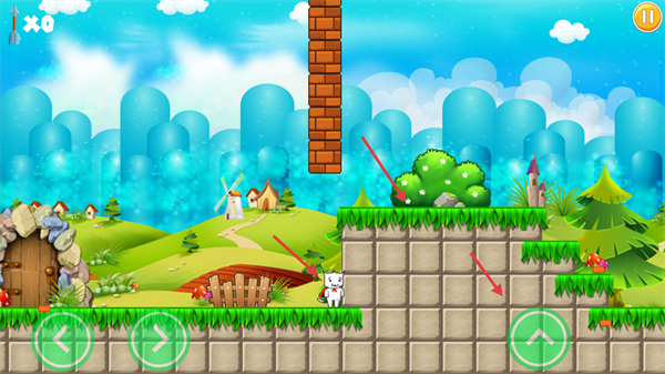 4、操遇到障碍,点击右下方技能控制角色跳跃到达平台上。