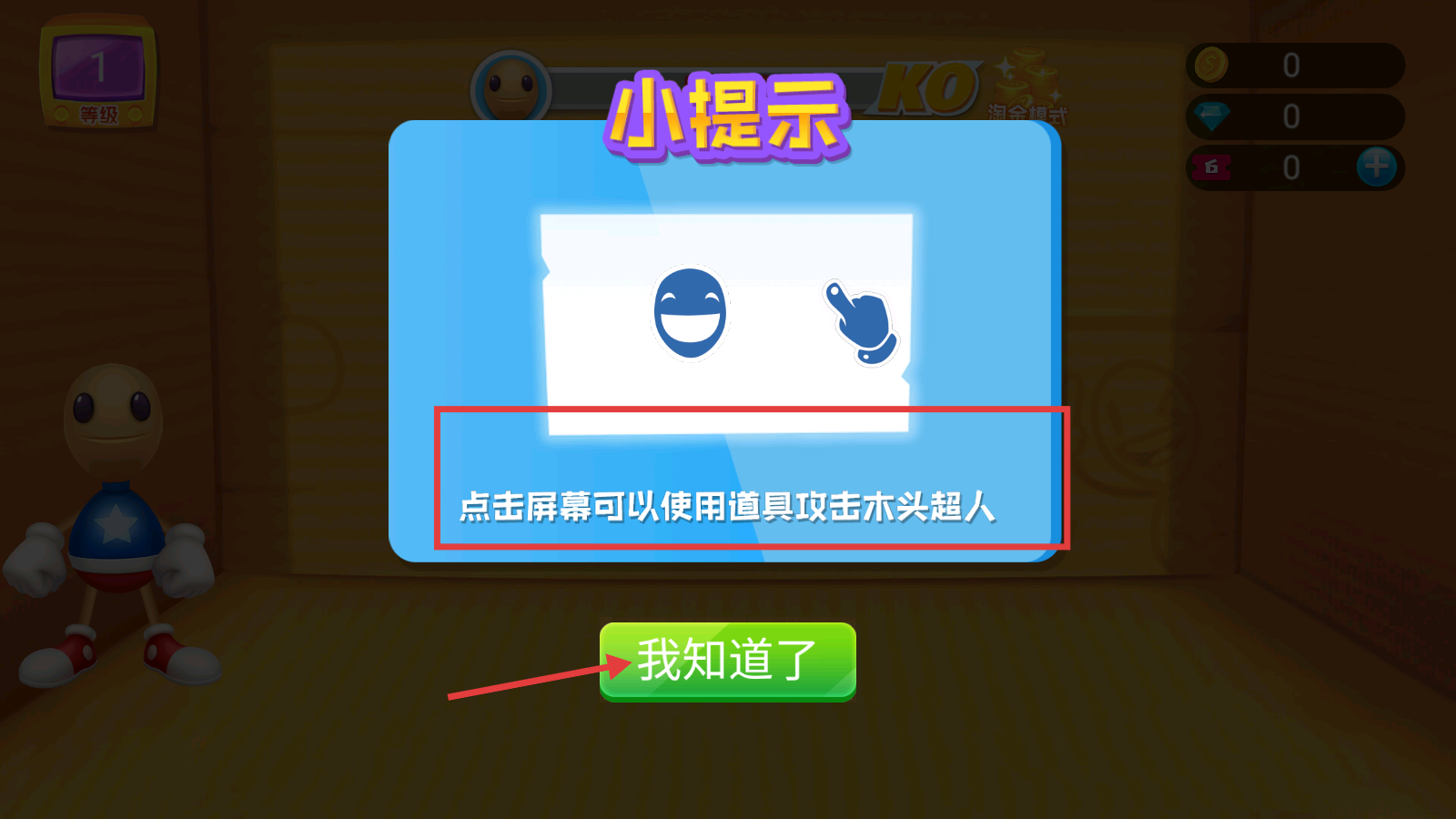 2、点击【我知道了】按钮,确认小提示并继续游戏。
