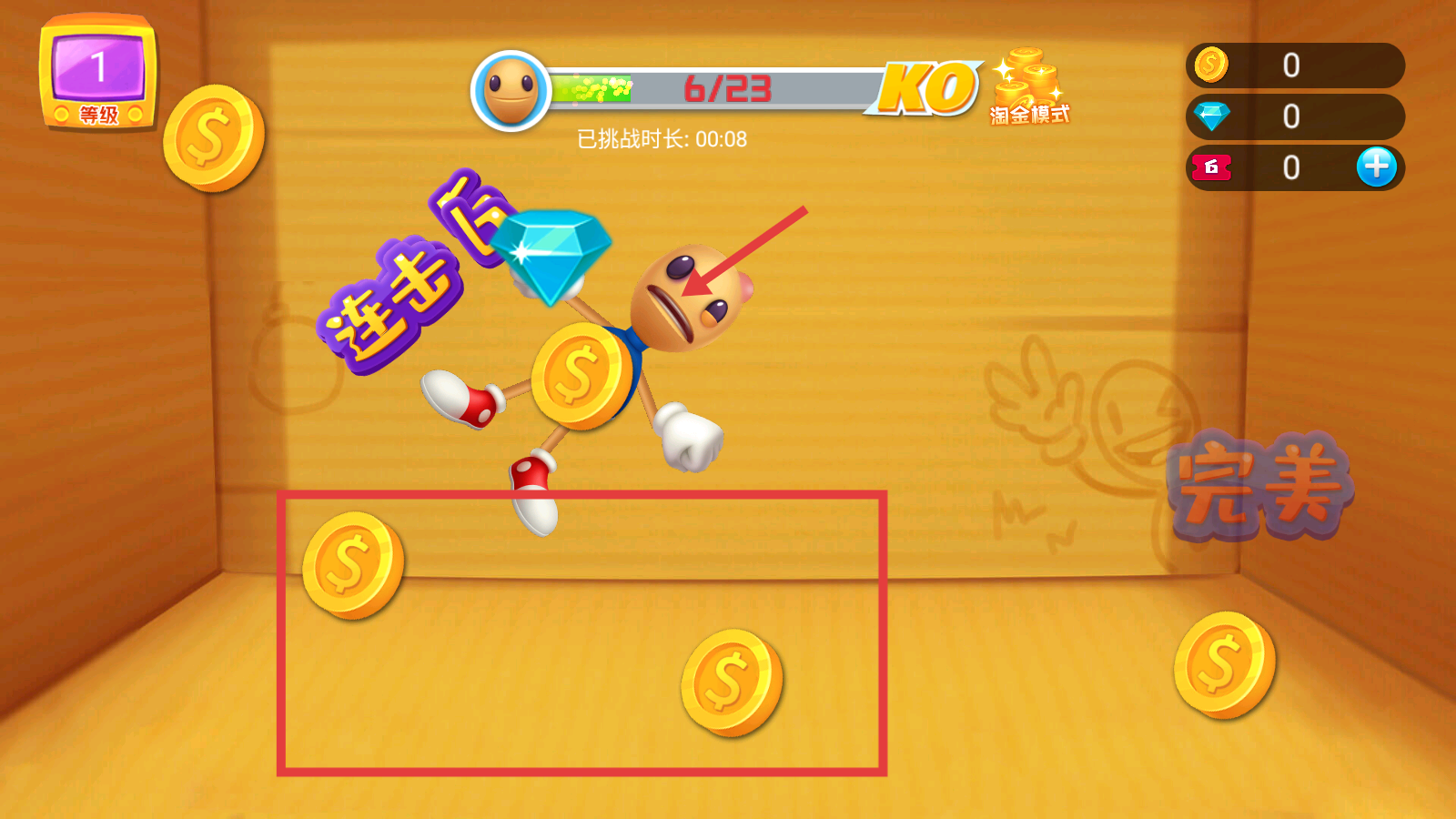 4、关注上方进度条,在“淘金模式”中击败对手。