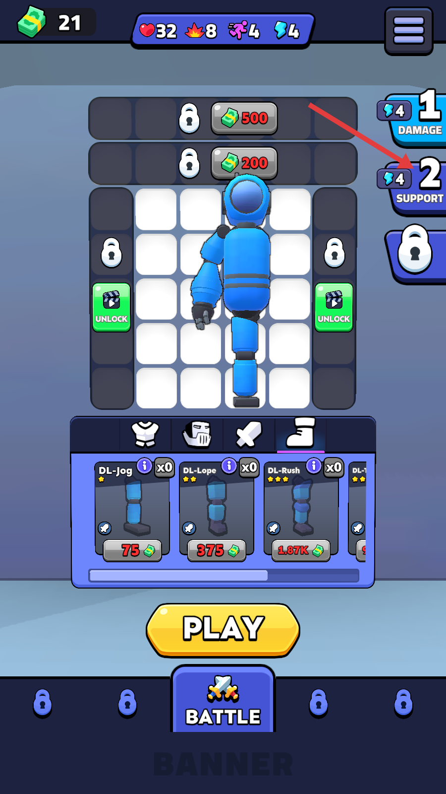 3、解锁并装备机器人部件,提升战力。