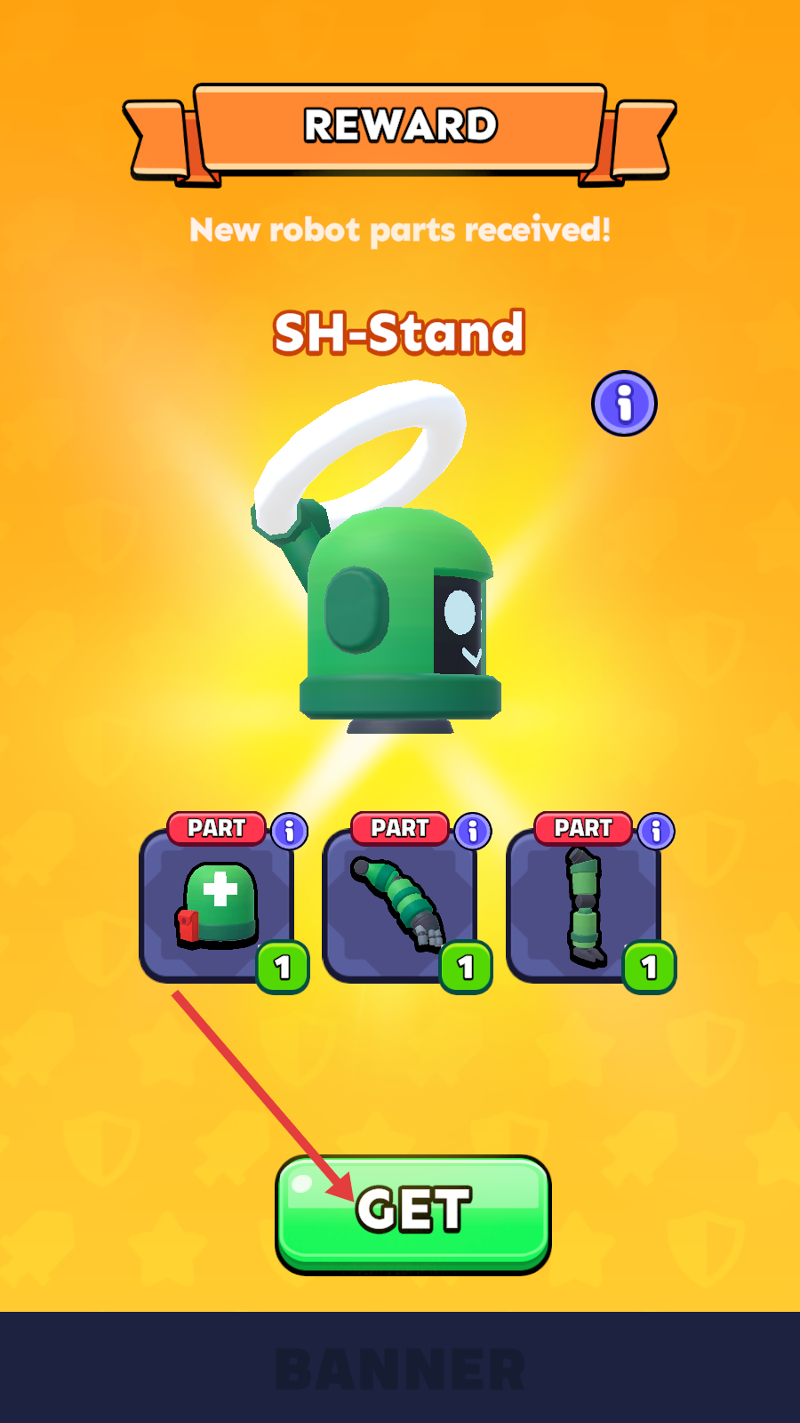 2、点击【GET】按钮,领取新的机器人奖励。