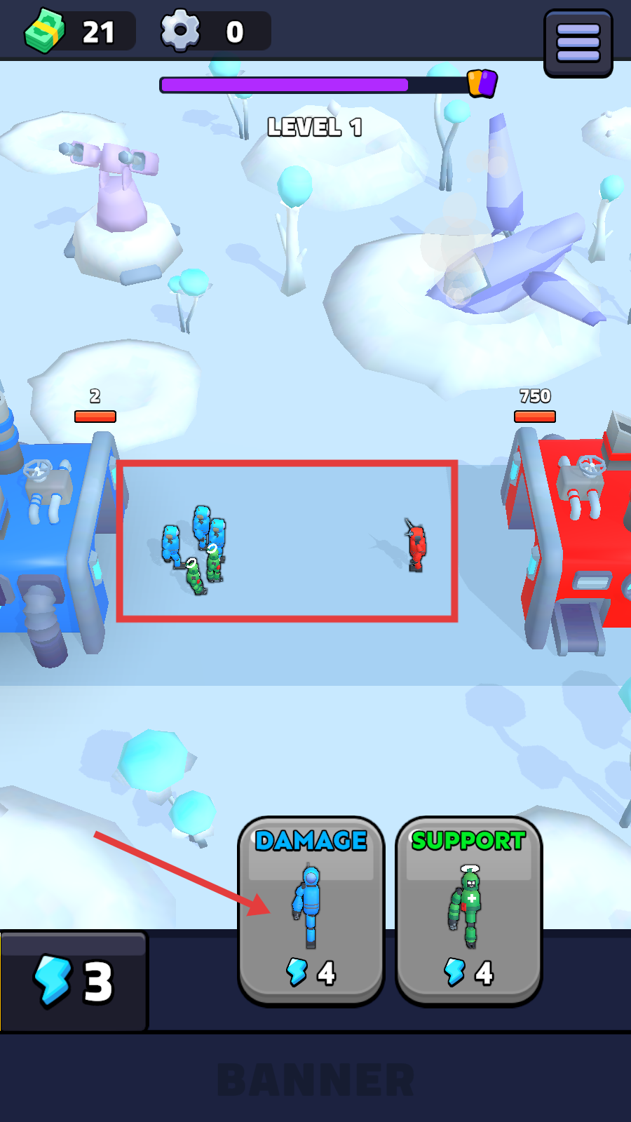 1、升级【SUPPORT】士兵,增强部队能力。