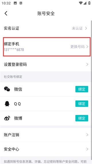 3、在账号安全页面找到【绑定手机】,点击右侧的【更换号码】,进入手机号更换流程。