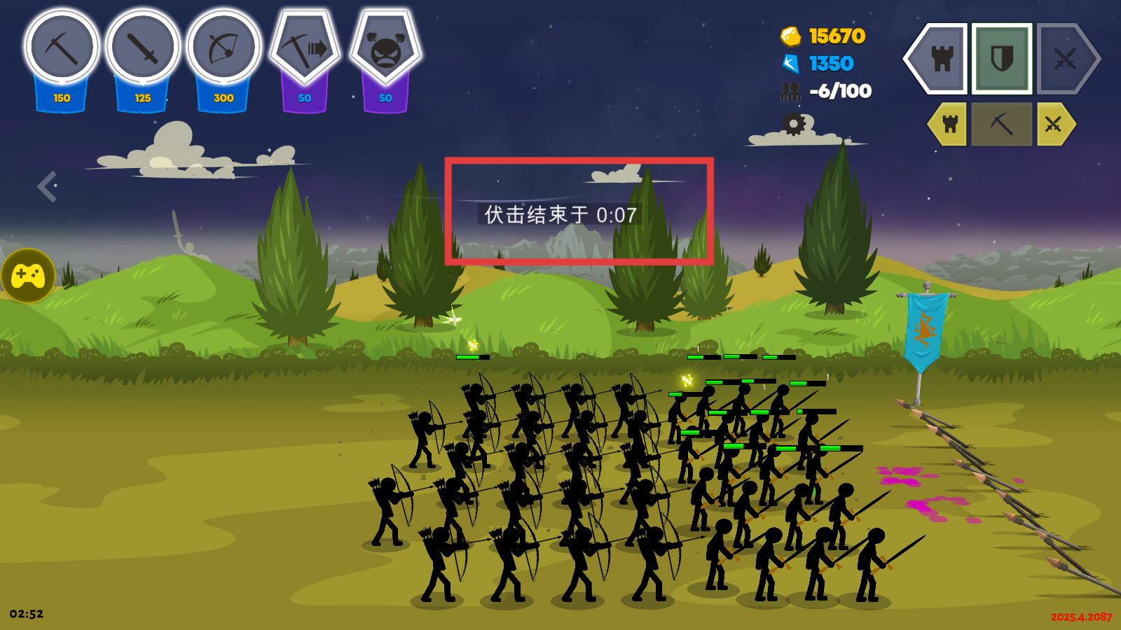 2、采用经典火柴人美术风格与流畅战斗动画,呈现军团对战与技能特效的视觉表现。