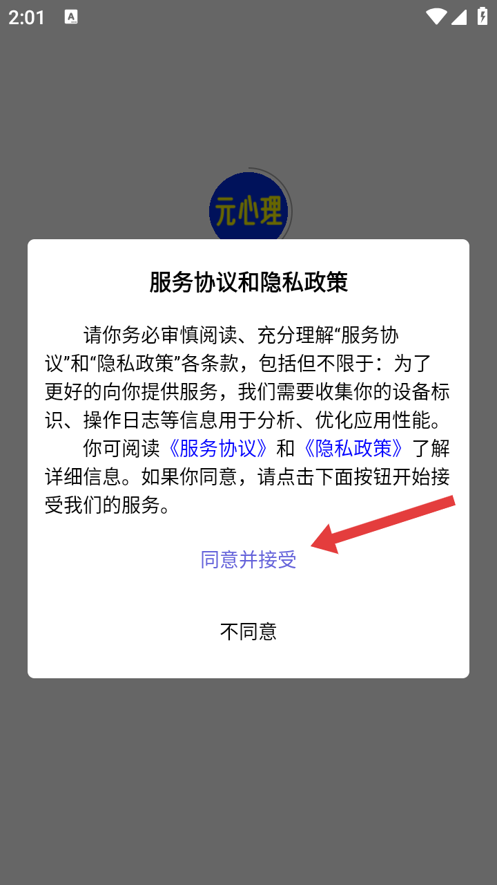 1、用户打开软件后,点击【同意并接受】即可进入登录界面。