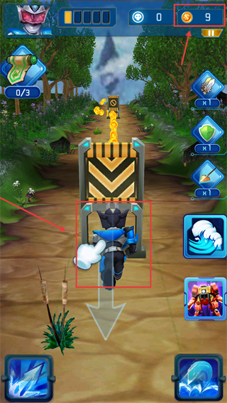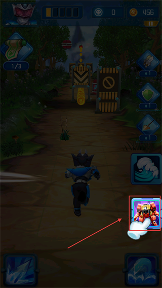 4、跑酷途中合理点击右侧【机甲】道具,借助其效果突破障碍增强跑酷过程的生存能力。